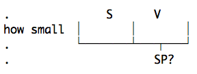 今回はhow smallは、名詞を修飾していないので、補語Cとして使うことになり、後ろにCの穴があることに注意しつつ、疑問節の文作っていきます。