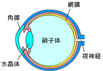 水晶体はカメラのレンズのような役割を果たしています。水晶体の形をうまく調整できないと、ピンぼけした写真のようにものがぼやけて見えます。